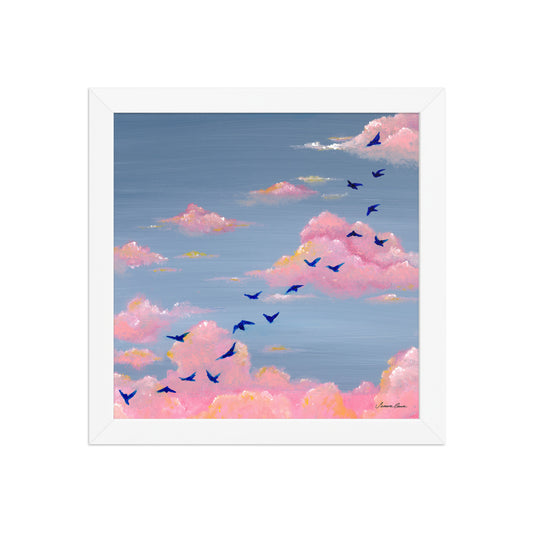 Pink Clouds & Birds - Framed 10x10 Paper Print