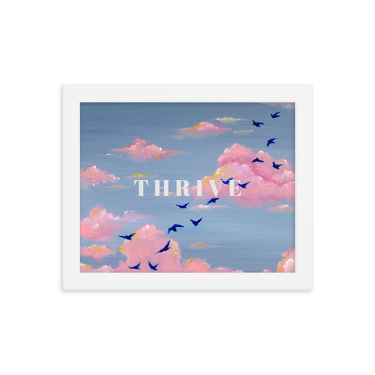 THRIVE - Framed 8x10 Paper Print (Pink Clouds & Birds)